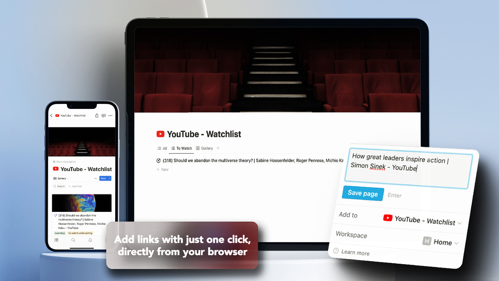 Our cutting-edge Notion template offers an intuitive way to save YouTube videos and create your personalized watchlist. But that's not all – it goes above and beyond, transforming your study and learning experience like never before.